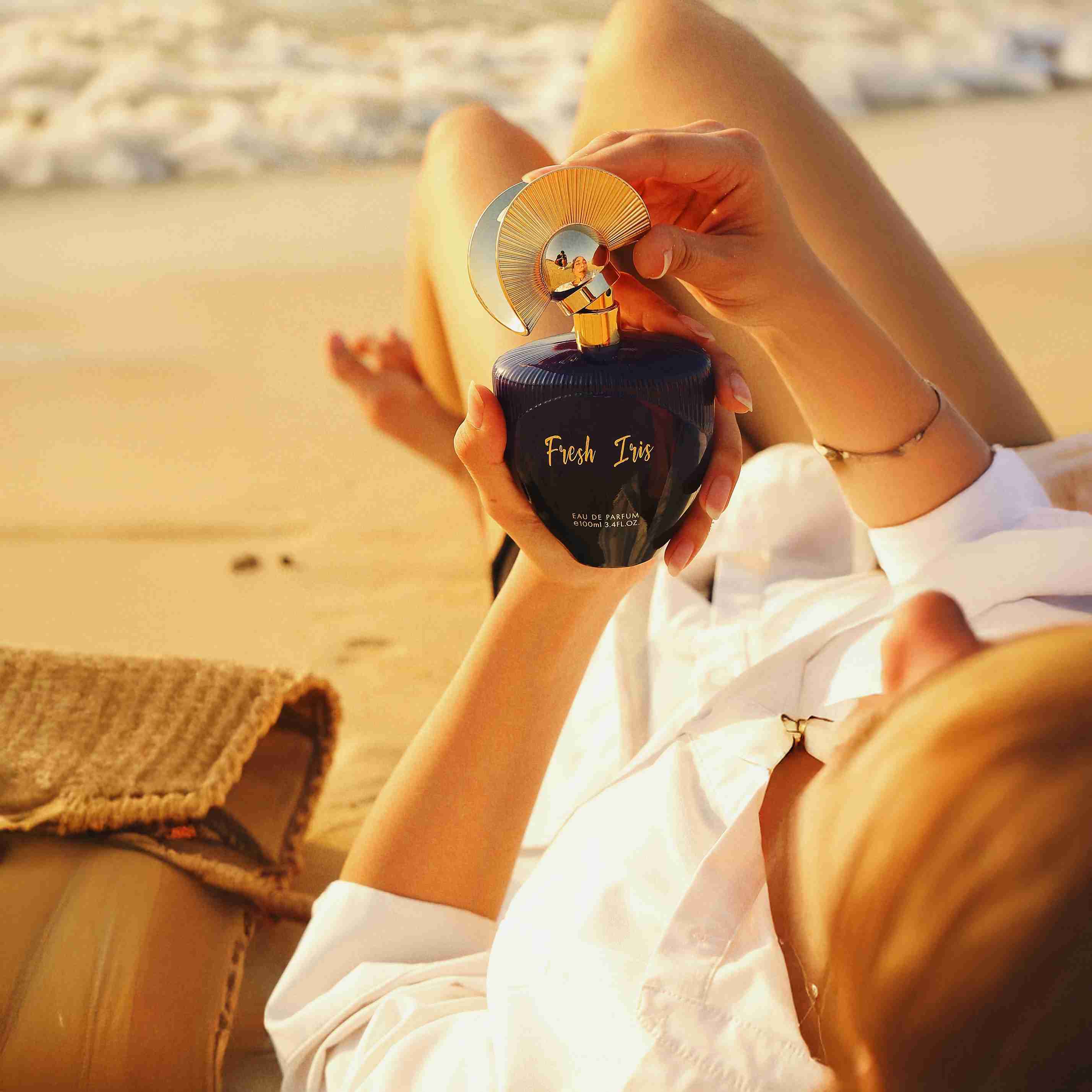 Fresh Iris is a captivating Eau de Parfum, exquisite fragrance unfolds a sensorial journey through an oriental Amber olfactive family.